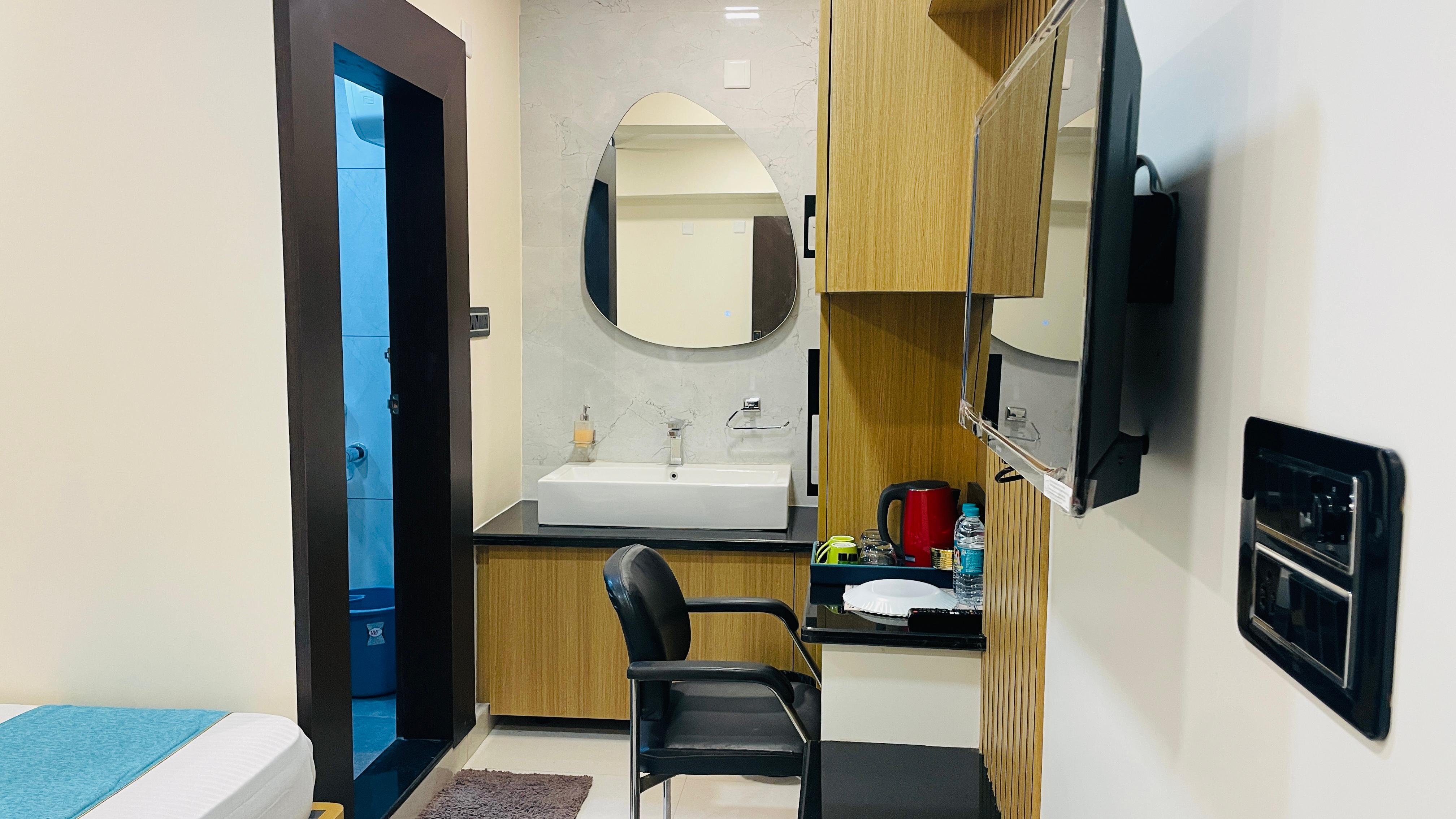 A room designed with a double bed (or two double beds) to accommodate two guests comfortably. "Deluxe" indicates that the room is a step up from a standard room, typically offering better furnishings, larger space, and enhanced amenities such as premium bedding, quality linens, and possibly more luxurious bathroom facilities. In this 7 Rooms contains Queen Beds. Remaining 4 Rooms contains furnished with two separate single beds (as opposed to a double or queen-sized bed) and equipped with air conditioning.