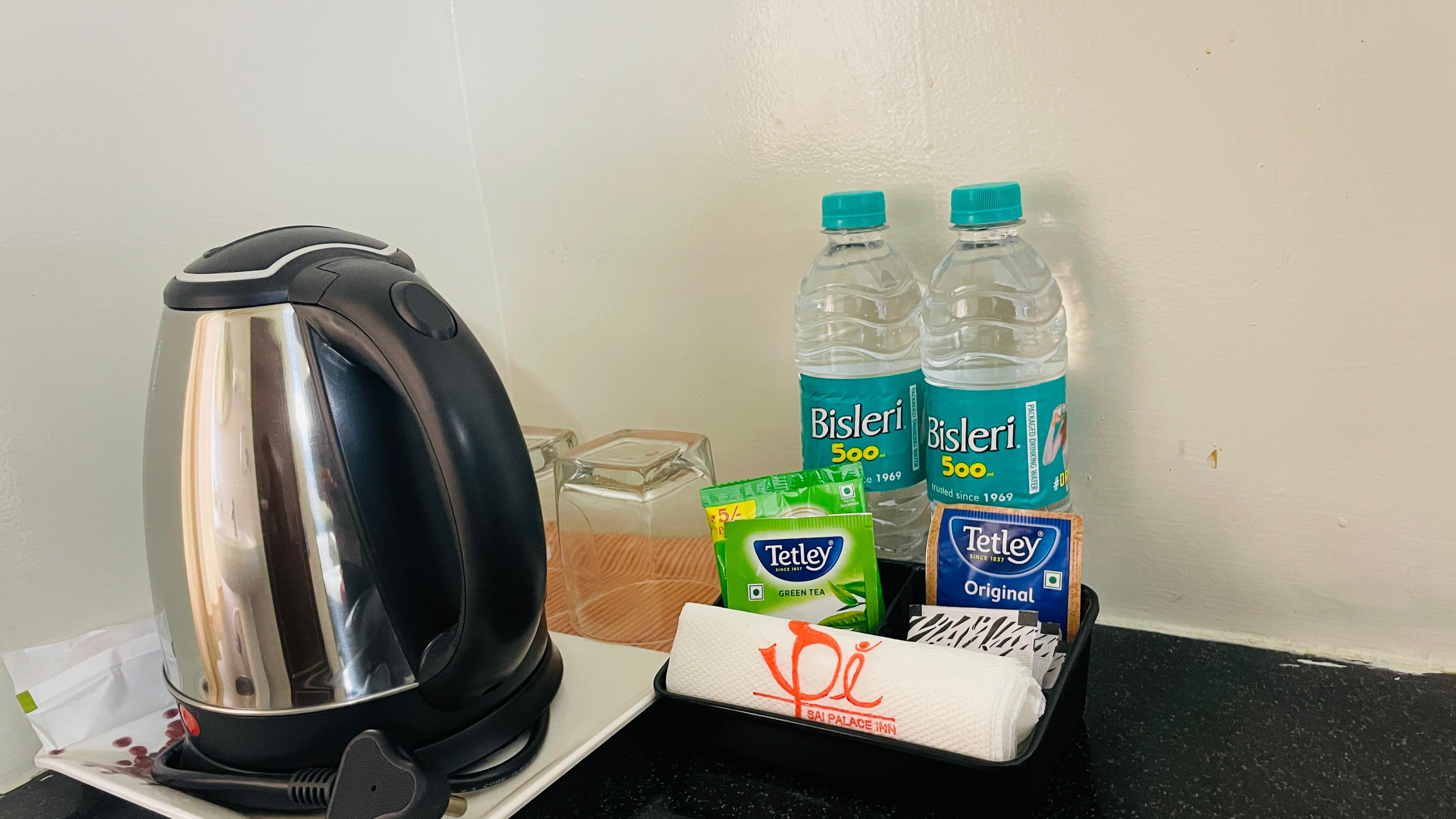 - Service station with coffee machine and tea